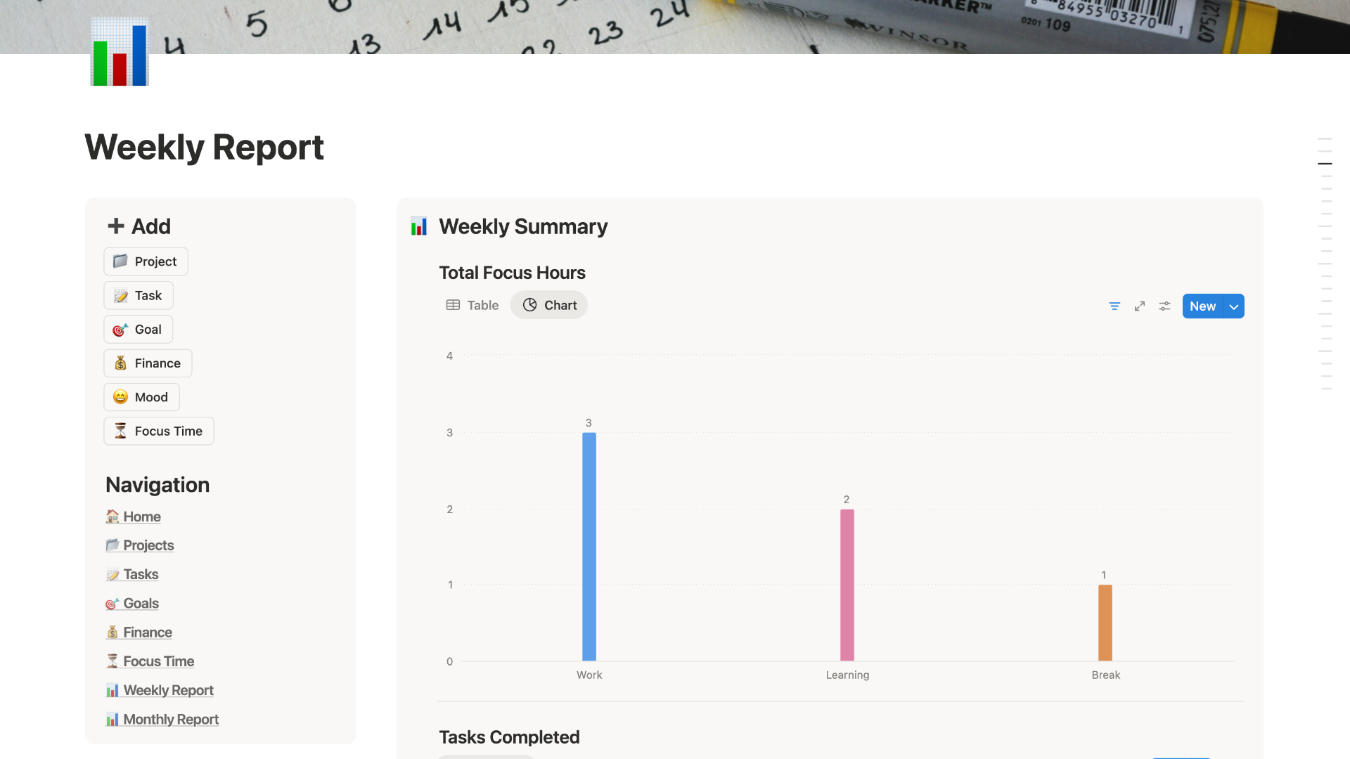 Goals & Reflection: Set your monthly/weekly goals and reflect on progress.